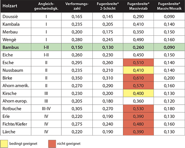 Je kleiner der Wert, desto stabiler ist das Parkett und umso geringer die Fugenbildung. Die oberen 4 Holzarten sind zudem noch alle Tropenhölzer…